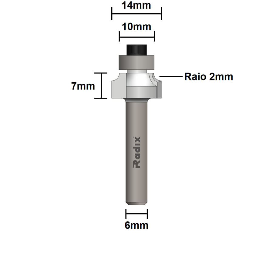Fresa para Bordas Raio 2mm Corte 14mm Haste 6mm Radix